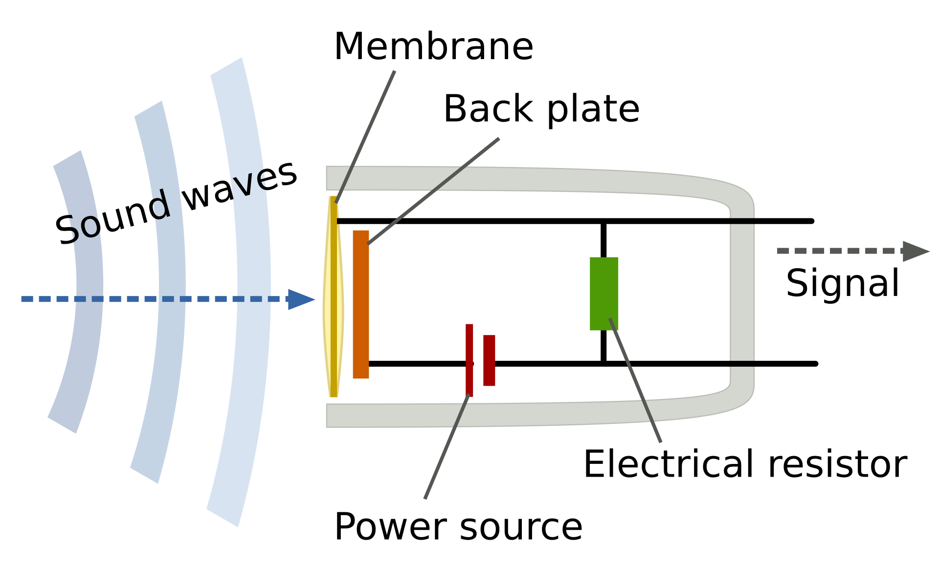 Inside a condenser mic is a thin diaphragm and a backplate.